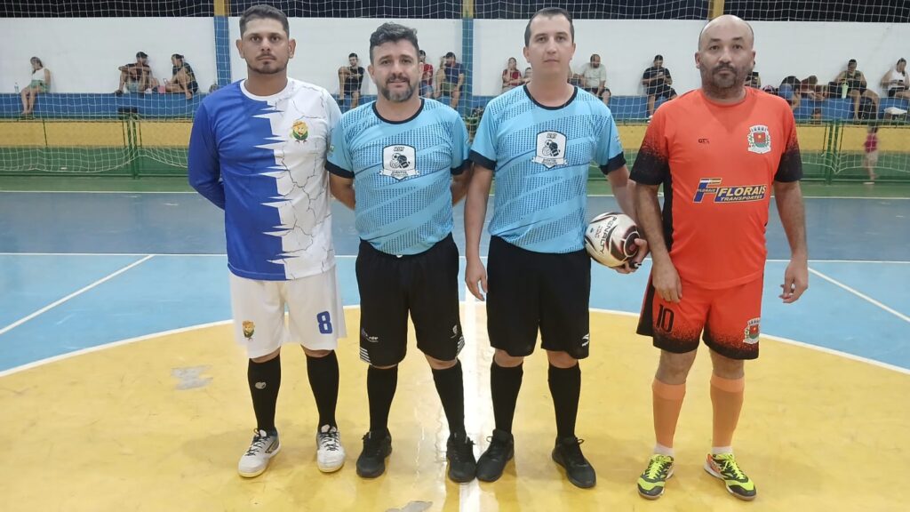 ABAIXO FOTO DOS ARBITROS NO CENTRO DA IMAGEM ( AELTON E ADRIANINHO) COM OS CAPITÃES DE AZUL E BRANCO ( CÇÁUDIO DA EQUIPE DA FAZENDA CATTAPAN E DE LARANJA FONSECA DA EQUIPE DO UNIÃO IPIRANGUENSE)