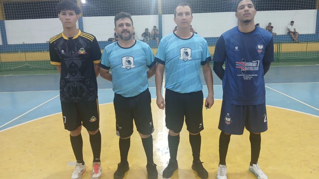 ABAIXO FOTO DA EQUIPE DE ARBITRAGEM NO CENTRO DA IMAGRM ( AELTON E ADRIANINHO) COM OS CAPITÃES DE PRETO ADRIEL DA ESCOLINHA E DE AZUL MESC DA BARBEARIA)