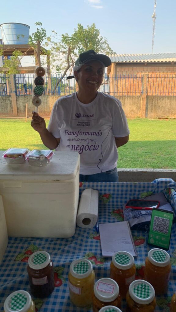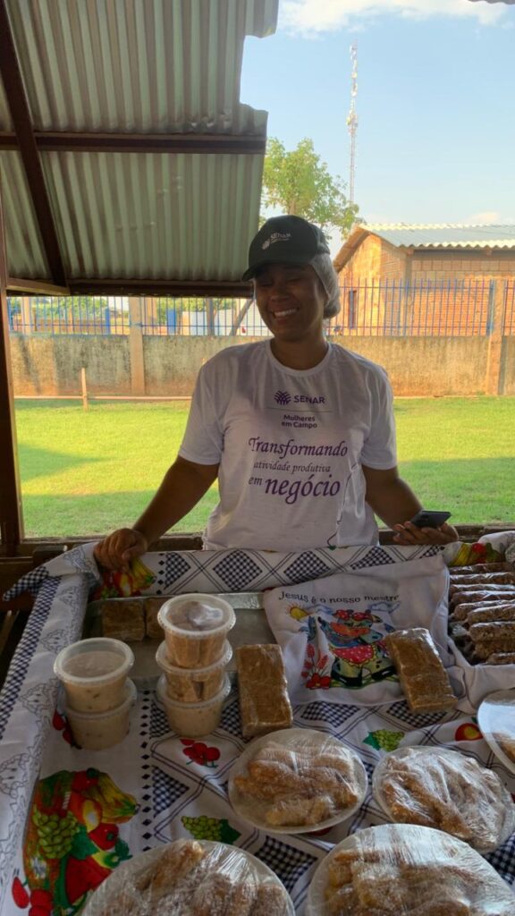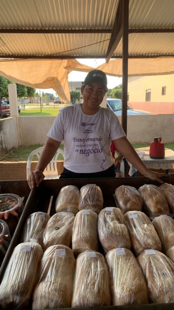 Durante o penúltimo módulo, foi promovida uma exposição dos produtos elaborados pelas alunas no espaço da Feira Municipal. A atividade, parte do conteúdo voltado à comercialização e valorização dos produtos locais, permitiu que as participantes colocassem em prática os ensinamentos sobre precificação, apresentação e negociação, além de fortalecerem sua autoconfiança como empreendedoras.