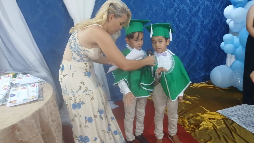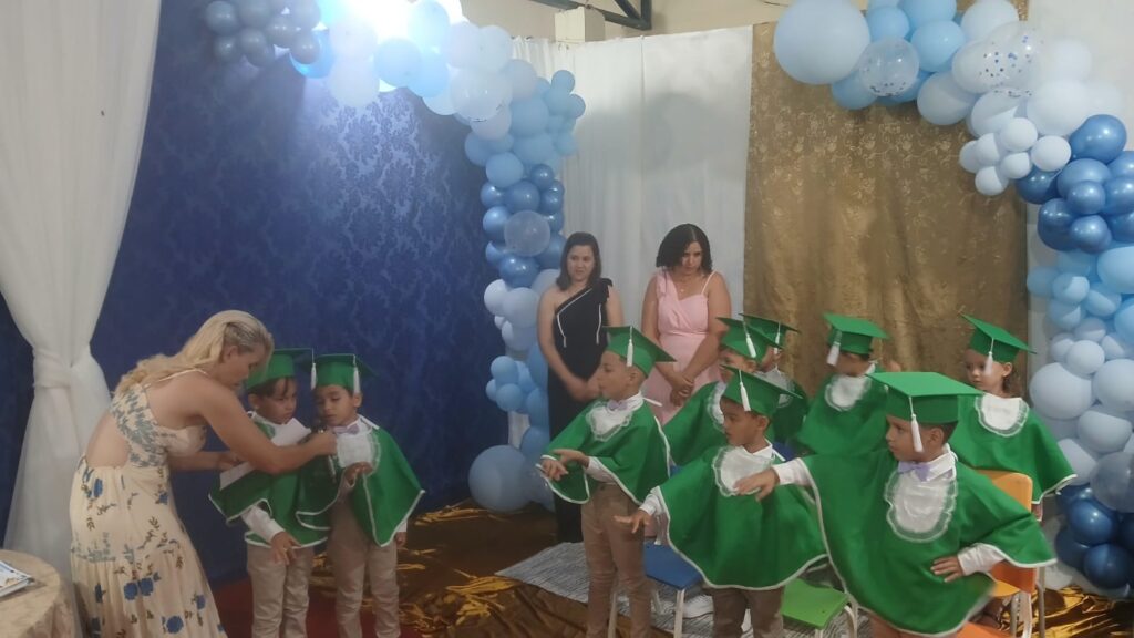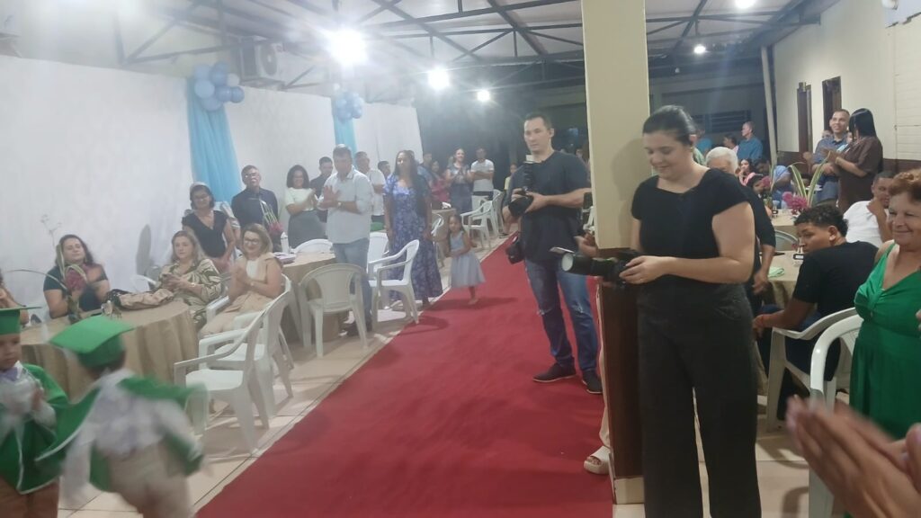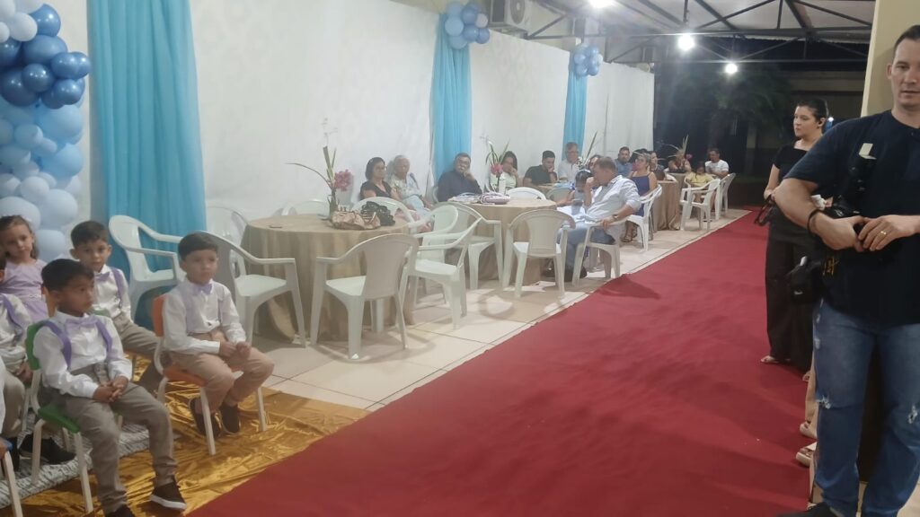 A cerimônia aconteceu nas dependências da própria escola, que ficou lotada com a presença de pais, alunos, familiares, convidados e autoridades municipais. O clima foi de grande emoção, refletindo o orgulho das famílias e o reconhecimento pelo desenvolvimento das crianças ao longo do ano letivo.
