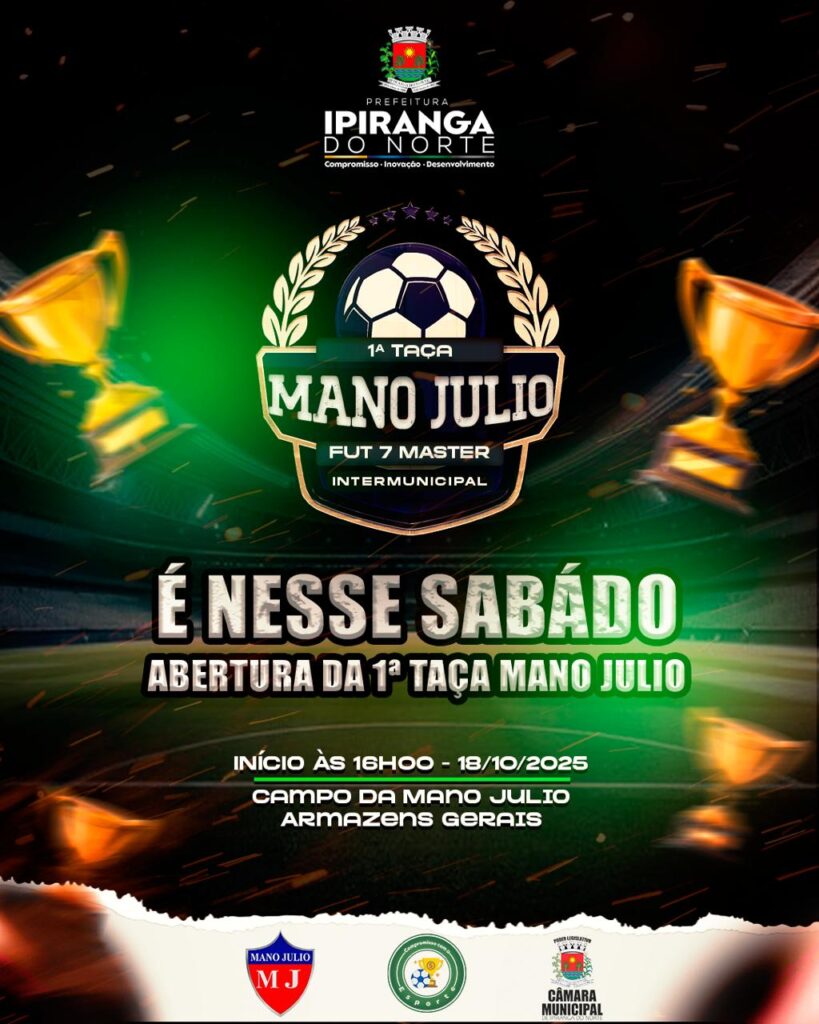 A cidade de Ipiranga do Norte será palco, a partir desta sábado dia(18), da 1ª Taça Mano Júlio de Fut 7 Master Intermunicipal, um campeonato regional que promete agitar o cenário esportivo do Médio Norte mato-grossense. A competição, voltada à categoria Master, reúne 13 equipes e distribuirá R$ 21 mil em premiações.