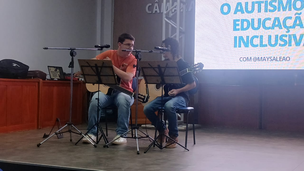 A programação teve início com apresentações culturais de alunos da Escola Estadual Bromildo Lawisch e do Departamento de Cultura do município, que interpretaram o Hino do Autista, marcando a abertura de uma noite repleta de momentos significativos.