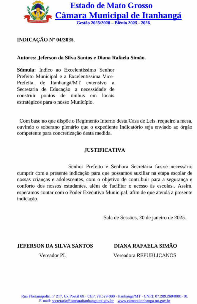 Para os vereadores, a iniciativa reflete o compromisso da gestão com o bem-estar da população e a sustentabilidade. “Estamos trabalhando para oferecer mais conforto às nossas crianças enquanto aguardam o transporte escolar. É uma ação simples, mas que faz diferença no dia a dia da comunidade”, concluíram os parlamentares.