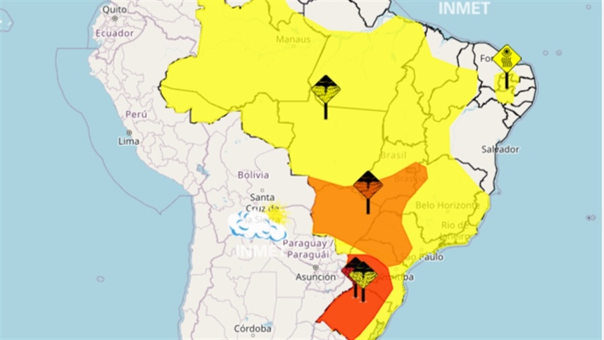 O Instituto Nacional de Meteorologia (INMET) emitiu um alerta de perigo potencial para tempestades a partir desta segunda-feira (8), com validade até quarta-feira (11), em razão da formação de um ciclone extratropical no centro-sul do Brasil. O sistema meteorológico deve provocar chuvas intensas, ventos fortes e risco de granizo, afetando principalmente os estados da região Sul, além de São Paulo, Rio de Janeiro, Minas Gerais e Mato Grosso do Sul.