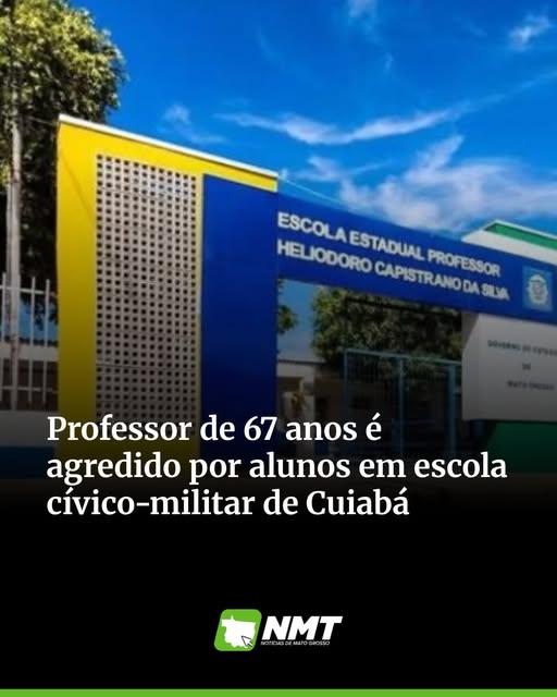 Um professor de 67 anos foi agredido por dois estudantes, de 14 e 15 anos, na Escola Estadual Cívico-Militar Heliodoro Capistrano da Silva, em Cuiabá.
