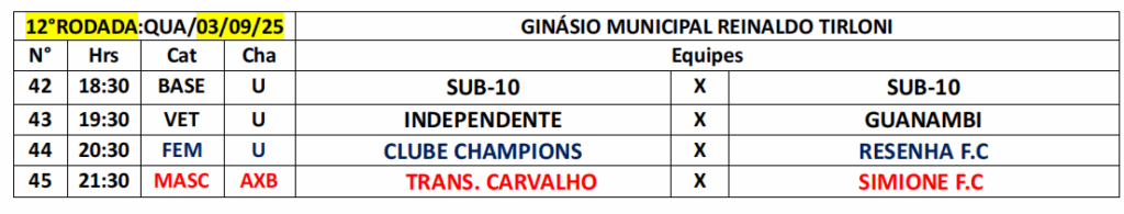 Os jogos terão o início as 19:30hs conforme regulamento da competição municipal, a 1ª partida será realizada na categoria de veteranos entre os semifinalista INDEPENDENTE X GUANAMBI. Desse jogo será quem será o adversário do UNIÃO IPIRANGUENSE já classificado para a final do domingo dia (07-09)