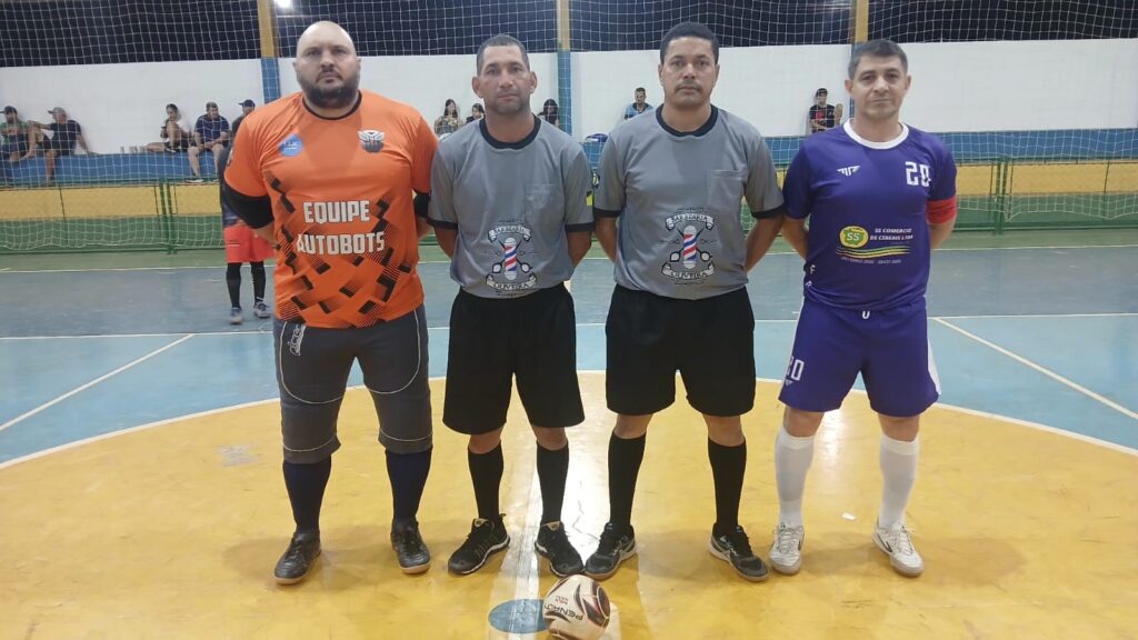 EQUIPE DE ARTIBROS DA PARTIDA FORÇA LIVRE NO CENTRO DA FOTO FERNANDO E JURACI, COM OS CAPITÃES DE BRANCO CALANGUNHO DA ESCOLINHA E DE AZUL DUDU DO INDEPENDENETE.