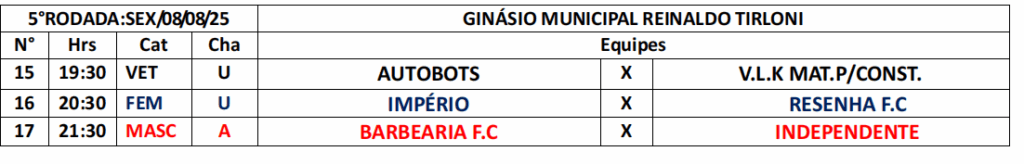 A 1ª Copa Sicredi de futsal de Itanhangá-MT, segue hoje dia (08-08) com mais três partidas na quadra do do ginásio de esportes Reinaldo Tirloni, em Itanhangá a partir das 19:30hs, conforme tabela da competição, confira se a sua equipe joga hoje na tabela a seguir.
