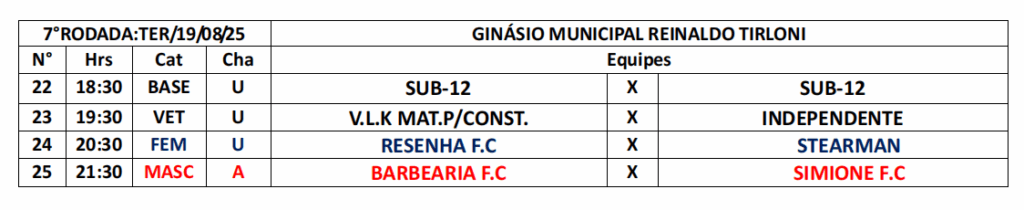 A 1ª Copa Sicredi de futsal de Itanhangá-MT, tem sequencia nessa terça feira dia (19-08) com mais três partidas valendo pela 7ª rodada da copa edição 2025. Os jogos serão realizados na quadra esportiva do Ginásio Reinaldo Tirlini a partir das das 19:3ohs. Conforme regulamento da competição Municipal. Veja na tabela abaixo se sua equipe joga hoje.