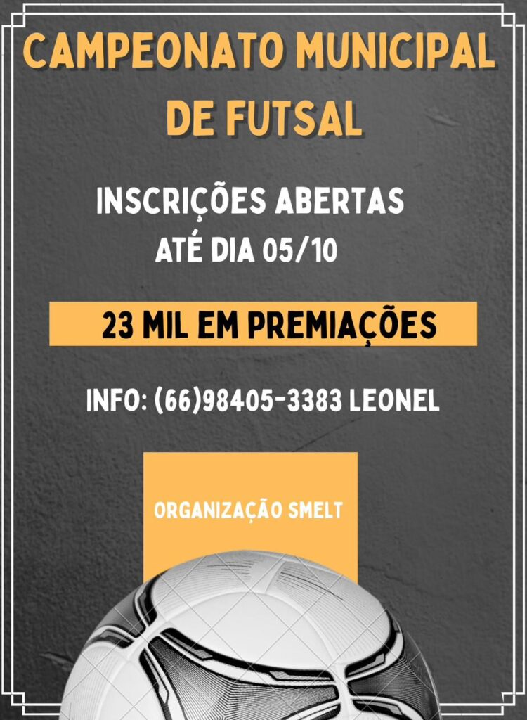 A Prefeitura Municipal acaba de anunciar a realização do 3º Campeonato Municipal de Futsal – Edição 2025, um evento que promete movimentar torcidas e reunir atletas de todas as idades em uma verdadeira celebração do esporte. Com inscrições já abertas, os times têm até o dia 5 de outubro para garantir sua participação.