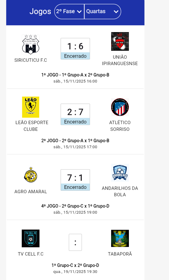 O primeiro duelo do dia começou às 16h, quando Siricuticu F.C. e União Ipiranguense entraram em campo em um confronto de alto nível. Apesar do equilíbrio inicial, o União Ipiranguense impôs seu ritmo e goleou por 6 a 1, garantindo a classificação com autoridade.