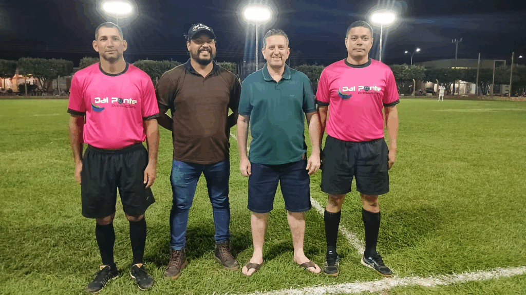 Arbitros junto com o Prefeito Emerson Sabatine de verde e Maycon Dalponte de Marron
