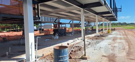 Toda a fechada em Glazing receberá a instalação de vidros espelhados na coz azul e haverá uma passarela, ligando a entrada principal aos camarotes. Com o fim do período da chuva a tendência é de as obras avançarem mais rapidamente para a conclusão em dezembro de 2026.