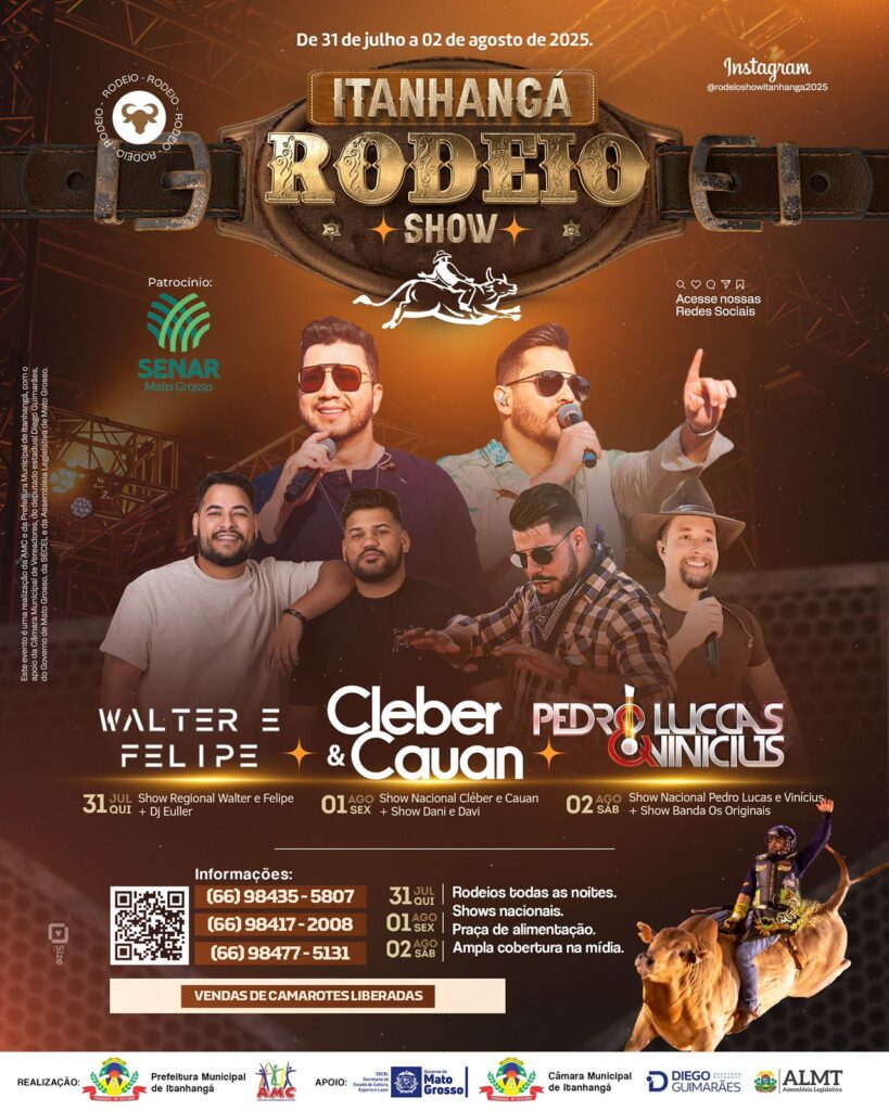 A contagem regressiva já começou! A cidade de Itanhangá se prepara para receber um dos eventos mais aguardados do ano: o Itanhangá Rodeio Show 2025. Marcado para acontecer entre os dias 31 de julho e 02 de agosto, o festival promete agitar o município e toda a região com uma programação recheada de grandes atrações, adrenalina na arena e, o melhor de tudo, com entrada franca todas as noites.