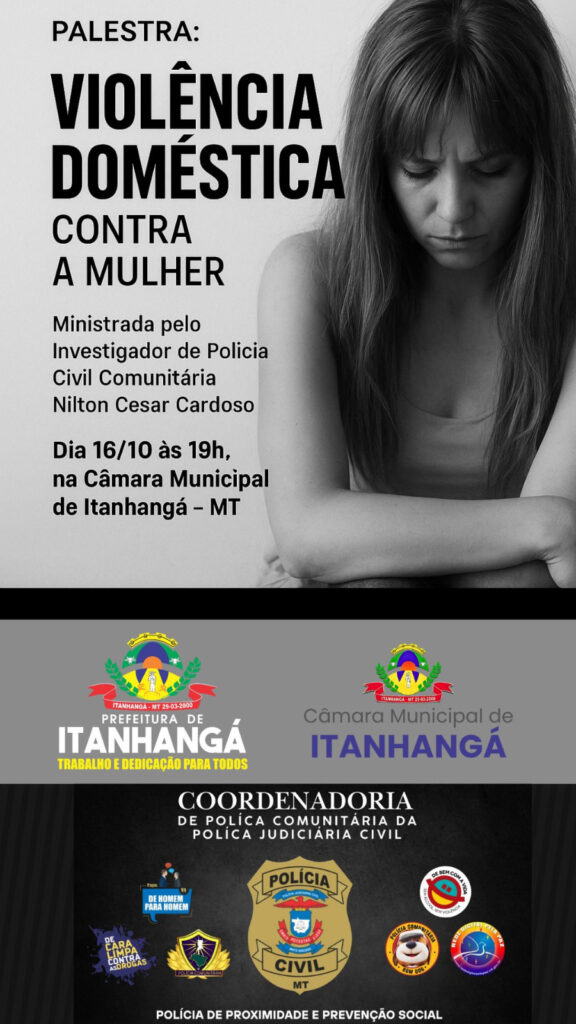A Prefeitura Municipal de Itanhangá (MT) promove, nesta quinta-feira (16), uma palestra sobre violência doméstica, voltada a toda a comunidade. O evento será realizado às 19h, no plenário da Câmara Municipal, com entrada gratuita.