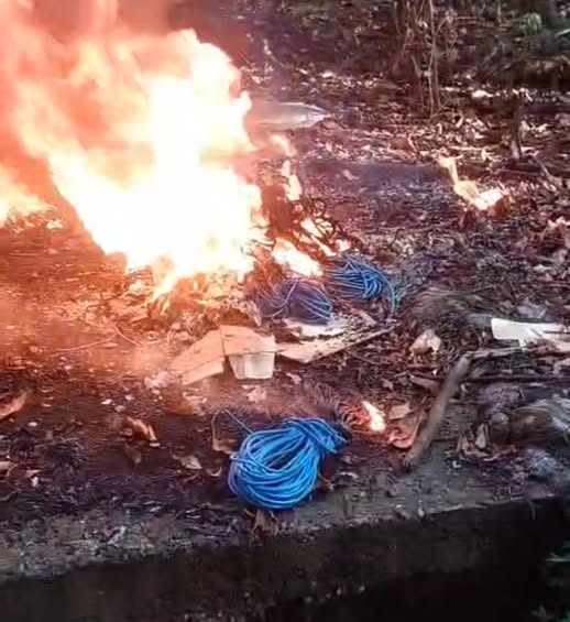 Os fios queimados foram recolhidos e levados até a delegacia dentro de uma caixa plástica, com apoio da guarnição VTR-02, composta pelos GCMs Júnior Luiz e De Lima. O fogo foi completamente apagado pela equipe.