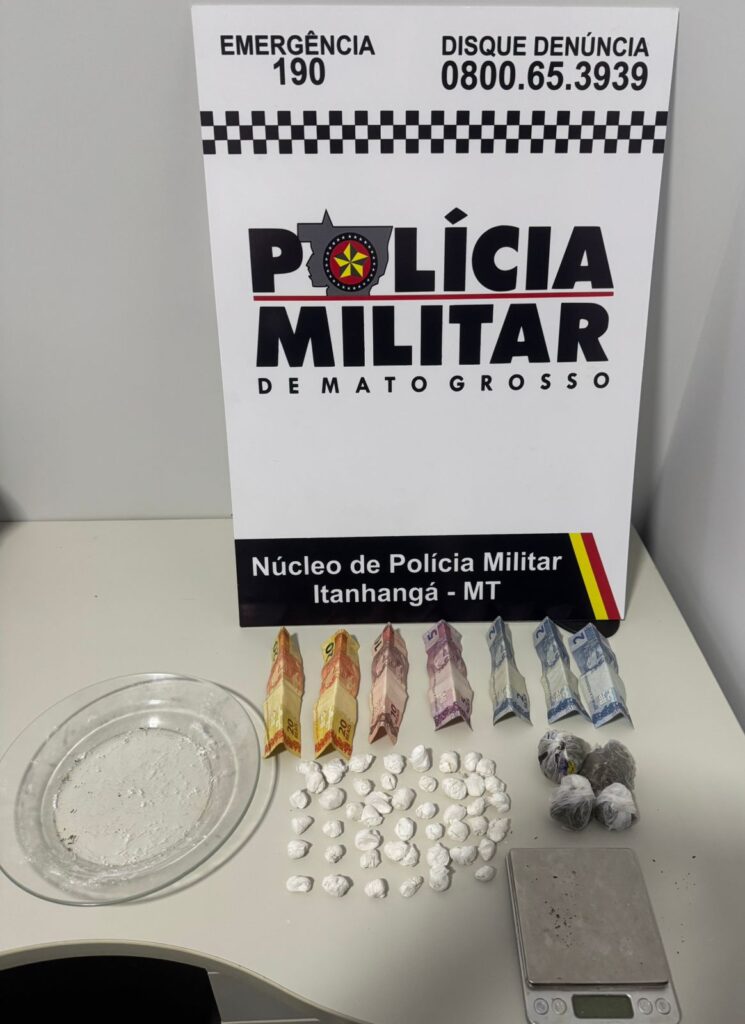 Na residência, já conhecida por denúncias como ponto de venda de drogas “biqueira”, foram encontrados mais 41 invólucros de substância análoga à cocaína, quatro invólucros grandes com substância análoga à maconha, uma balança de precisão e materiais plásticos utilizados no armazenamento do entorpecente.