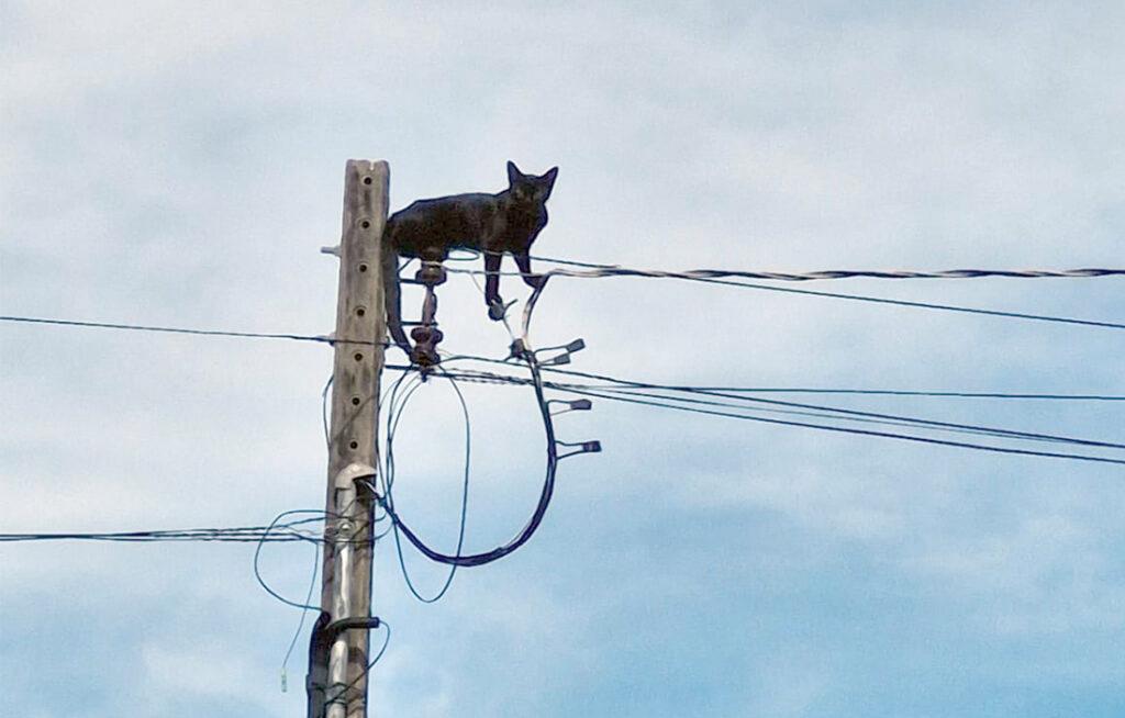 Resgatado pelos bombeiros gato que ficou preso em poste no Nortão