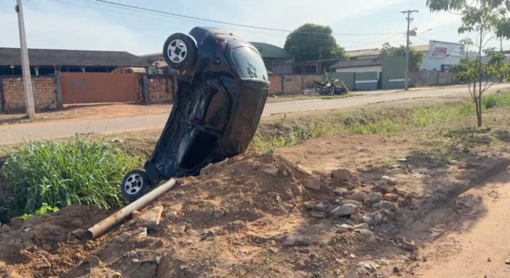 SINOP-MT: Carro colide com outro e cai em vala em Sinop; condutor embriagado preso