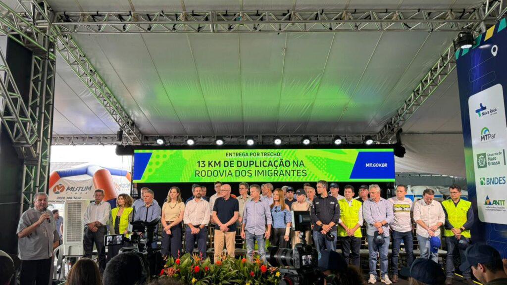 O governador Mauro Mendes destacou o momento histórico. “É muito bom quando você tem uma trajetória e consegue olhar para trás e ter orgulho daquilo que está acontecendo ao longo de sua trajetória. Isso que está acontecendo na BR-163 é uma história que foi construída a quatro, cinco, dez mãos, a milhares de mãos, que começou lá atrás e, graças a Deus, hoje é uma história muito exitosa”, “hoje existe uma nova realidade que caminha passos largos para concretizar”, “o dinheiro que colocamos nessa obra de todos nós, dinheiro de empresário, de produtos, de cidadão, de todos que pagam impostos”.