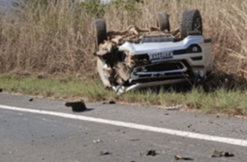 Com o impacto, a caminhonete saiu da rodovia, tombou e ficou com as rodas para o alto. O carro parou na pista e teve a frente toda destruída. O local onde ocorreu a colisão tem faixa contínua.
