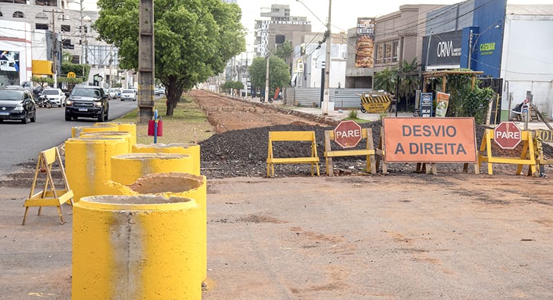 Os serviços nesse trecho da Avenida Júlio Campos devem prosseguir ainda por 10 a 15 dias, dependendo das condições climáticas (Foto – Marcos Miraglia/Gcom)