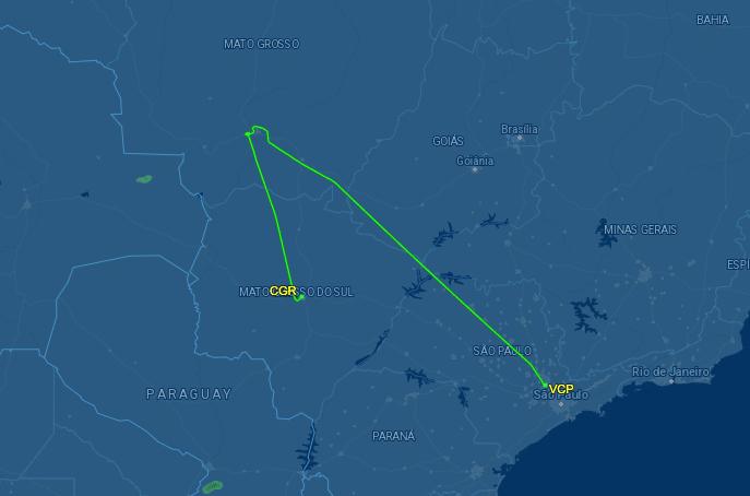 Conforme o mapa de voo, o avião chegou a circular próximo à Cuiabá e desviou posteriormente para Mato Grosso do Sul. A aeronave pousou em Campo Grande às 16h59. Em seguida, às 17h38, decolou e pousou em Várzea Grande às 18h30.