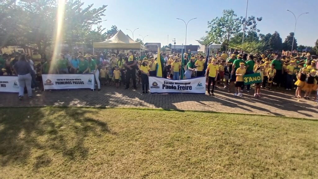 A população compareceu e lotou a praça União da Vitoria, no centro da cidade em um ato de civismo e patriotismo “Brava gente Brasileira”